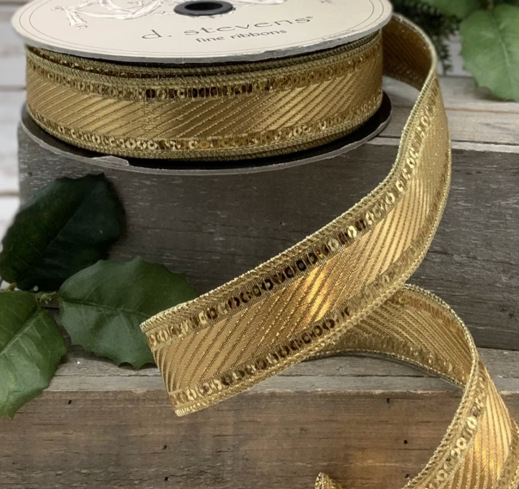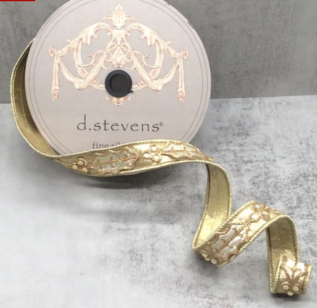 1" Metallic Dupion Jewel Holly Trim, Platinum Gold