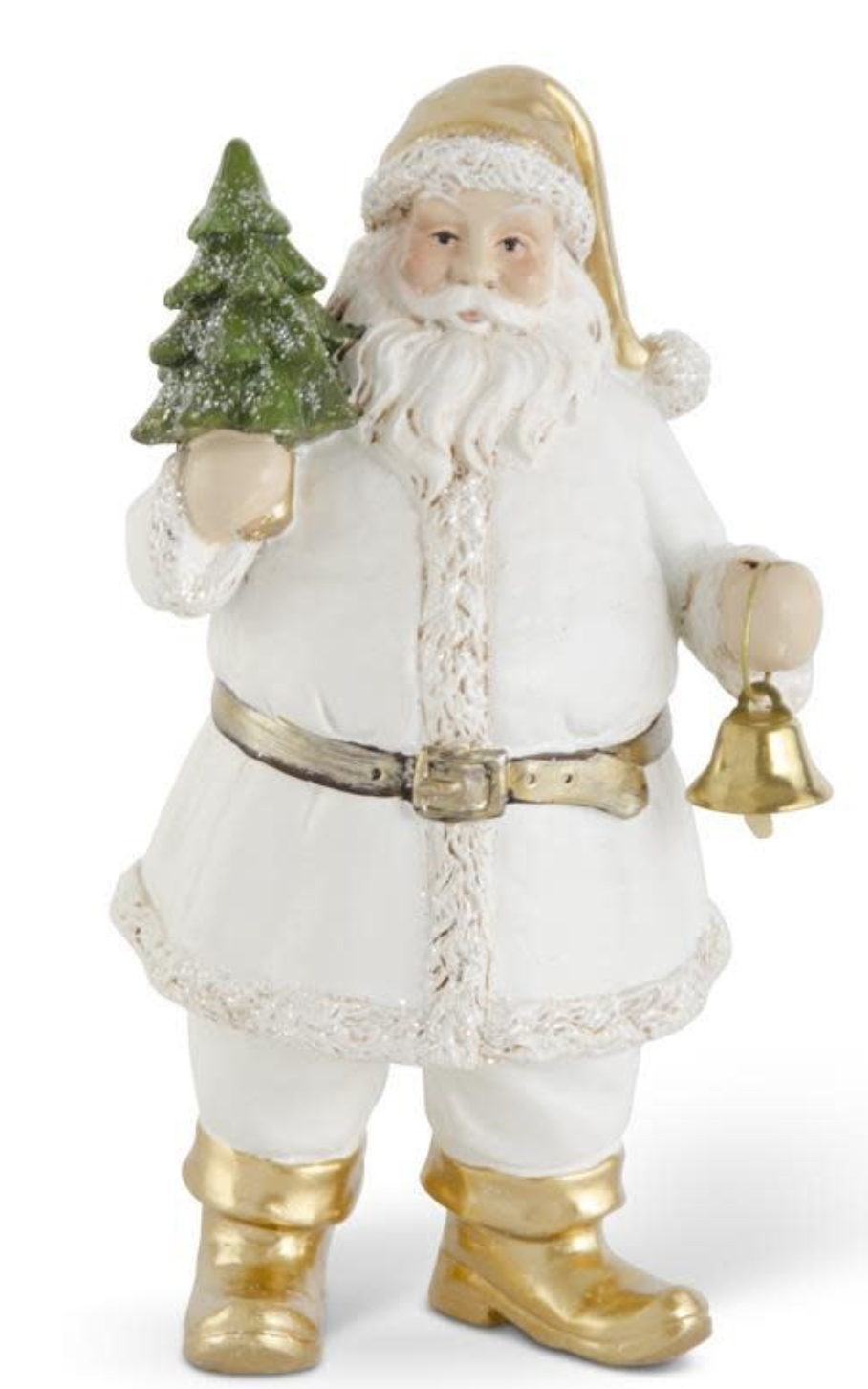 The White and gold Resin Santa With Tree and bell is a beautiful and decorative Christmas ornament that adds a touch of elegance to your holiday decor.