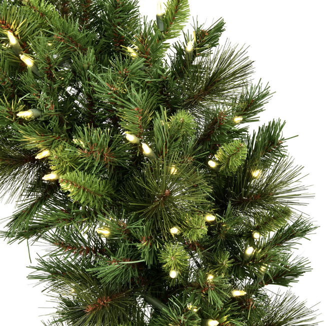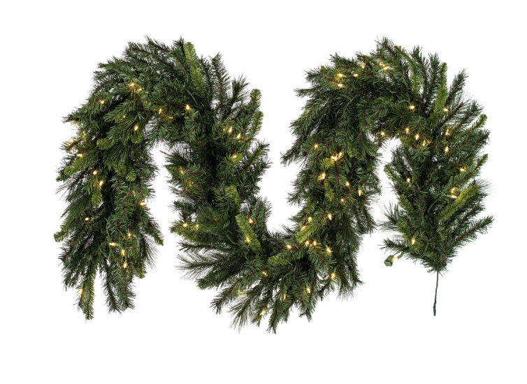 9' x 18" Bangor Mixed Pine Artificial Christmas Garland with 300 PVC Tips and UL Dura-Lit® 150 Warm White LED Mini Lights. Wrap this garland around the banister or lay it over the mantle for a polished holiday look. This beautiful garland comes Prelit with Warm White Dura-lit LED Mini Lights that run on 120V AC, and features rich green traditional PVC tips, giving a lush, natural look. It can be used just as it is or customized with your favorite lights, ornaments, ribbons, or Holiday picks. The flexible wired spine makes sure that this garland will meet all of your decorating needs.