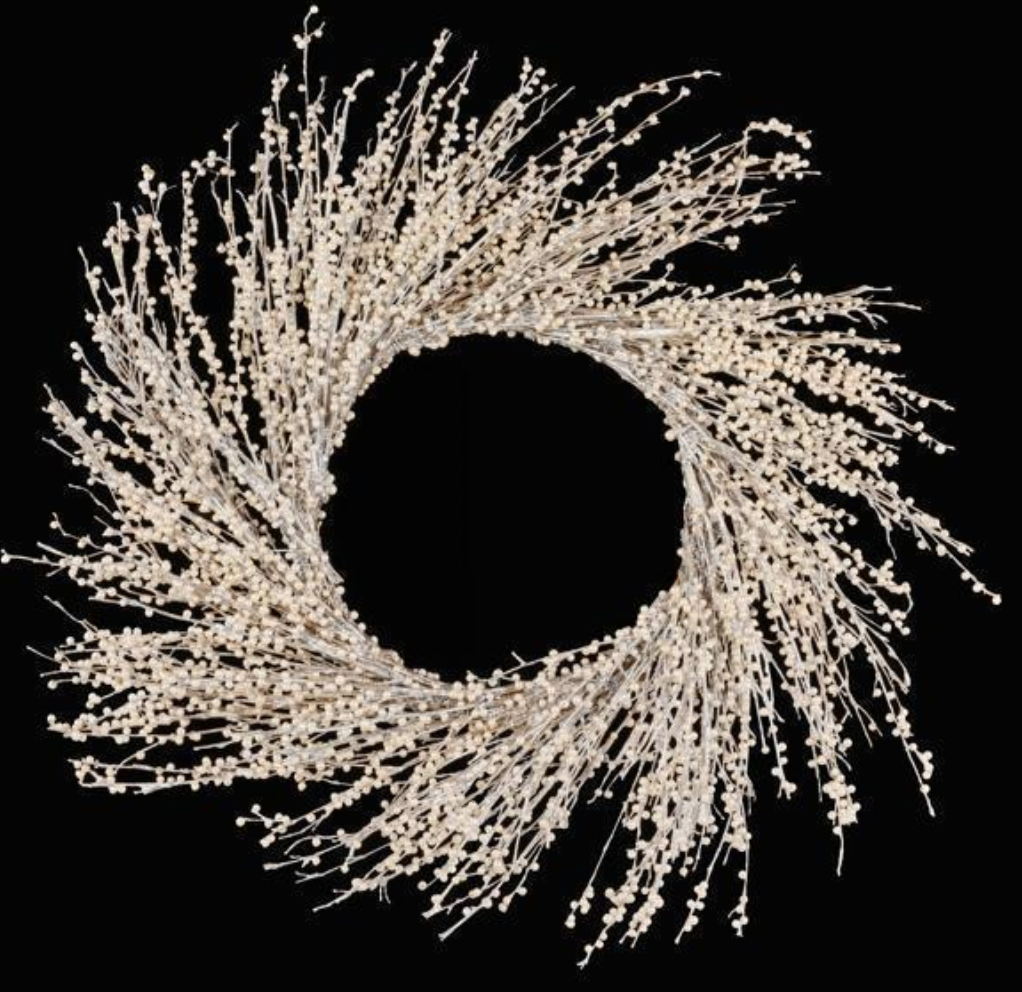 26"DIA DELUXE MINI BERRY TWIG WREATH IRIDESCENT WHITE