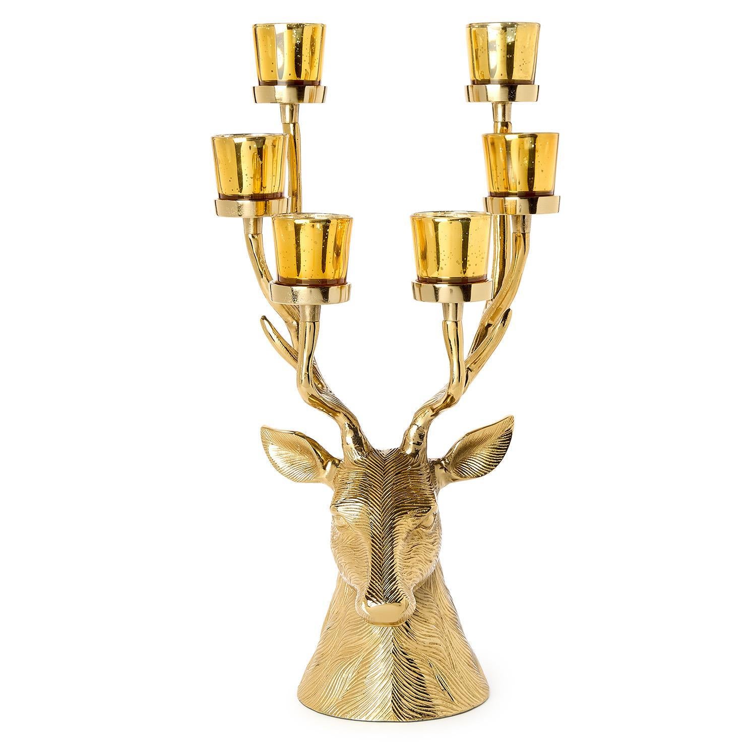 Gold Stag Candelabrum Centerpiece with Six Removeable Tealight Candleholders