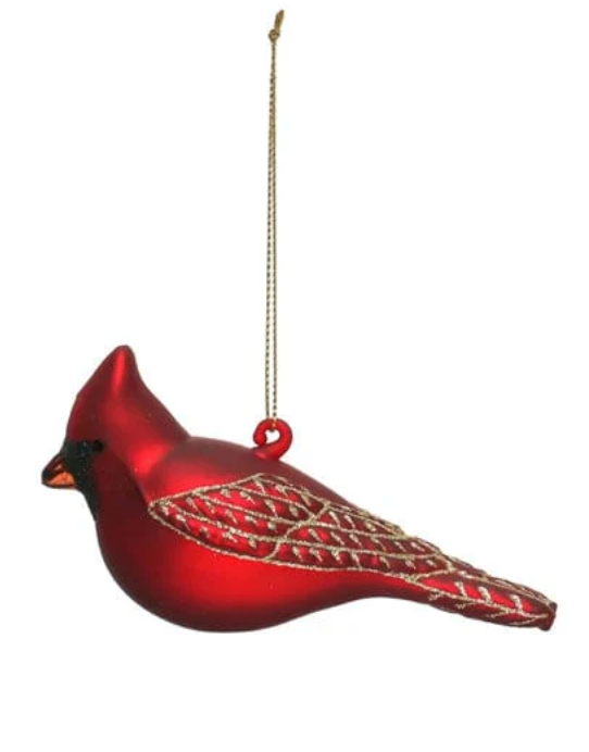 Hand-Painted Glass Cardinal Ornament with Glitter