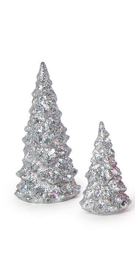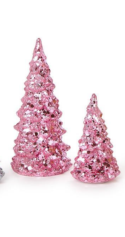 Add sparkle to your holiday décor with these Mini Light-Up Glitter Trees. Featuring four festive colors—silver, gold, green, and pink—and two sizes, small and large, these glittering trees light up to create a whimsical, festive atmosphere. Perfect for table displays, mantel décor, or crafting holiday scenes.
