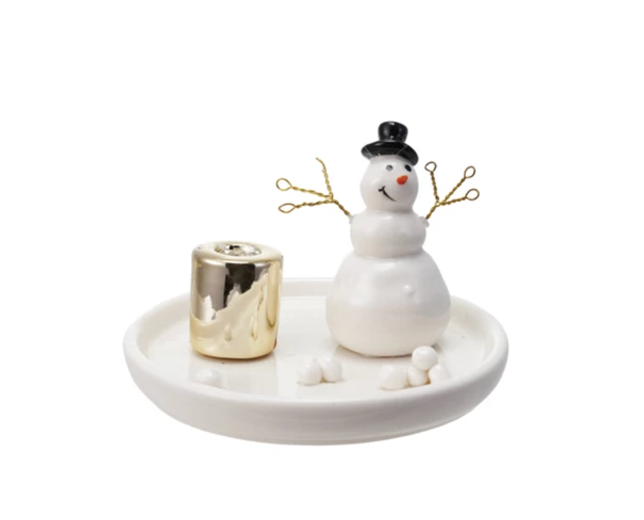 Stoneware & Wire Snowman Taper Holder with Electroplating