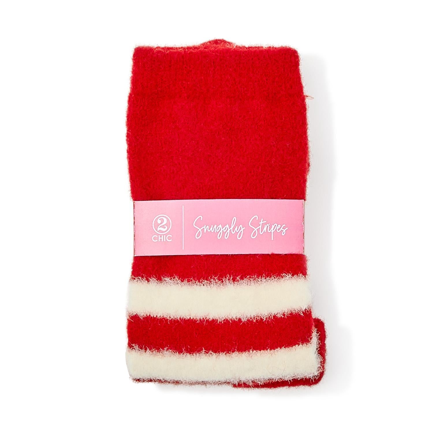 Cozy up in holiday style with this set of two red and white fuzzy stripe socks. Soft, warm, and oh-so-comfortable, they’re perfect for lounging by the fire, pairing with winter pajamas, or adding a festive touch to your everyday wear.