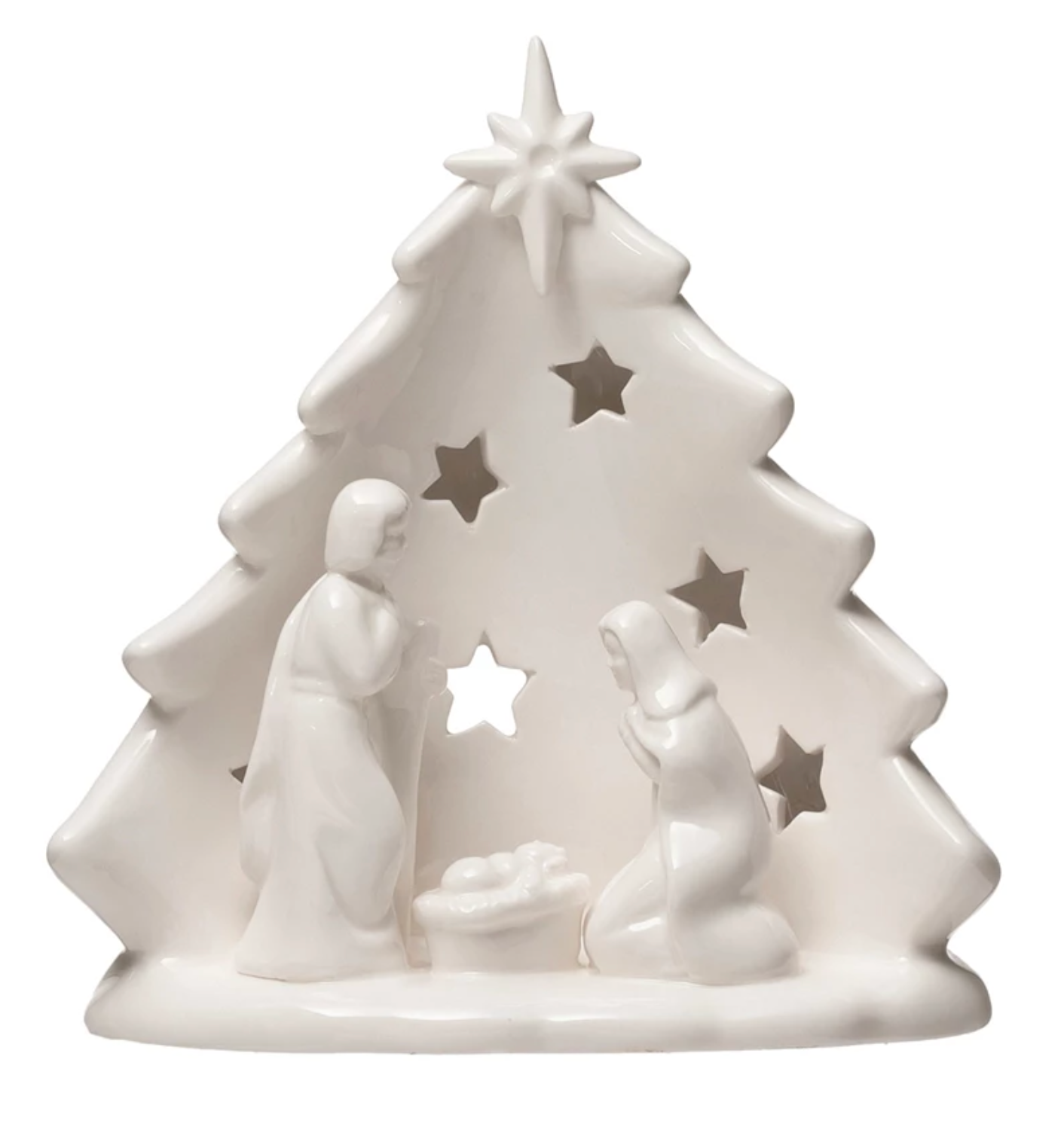 Stoneware Christmas Tree with Holy Family Candle Holder