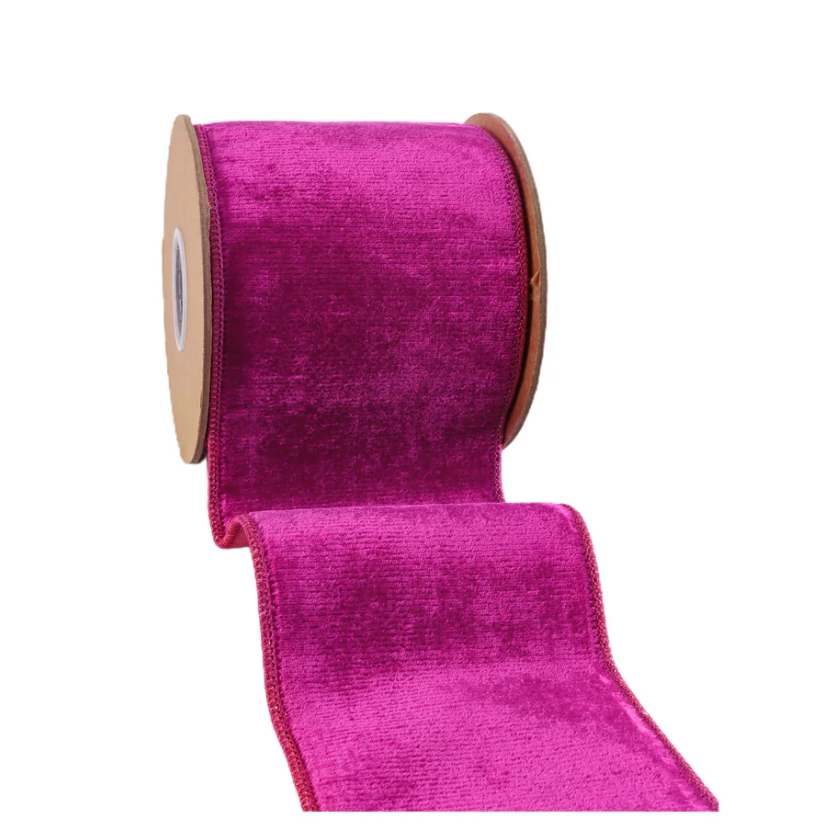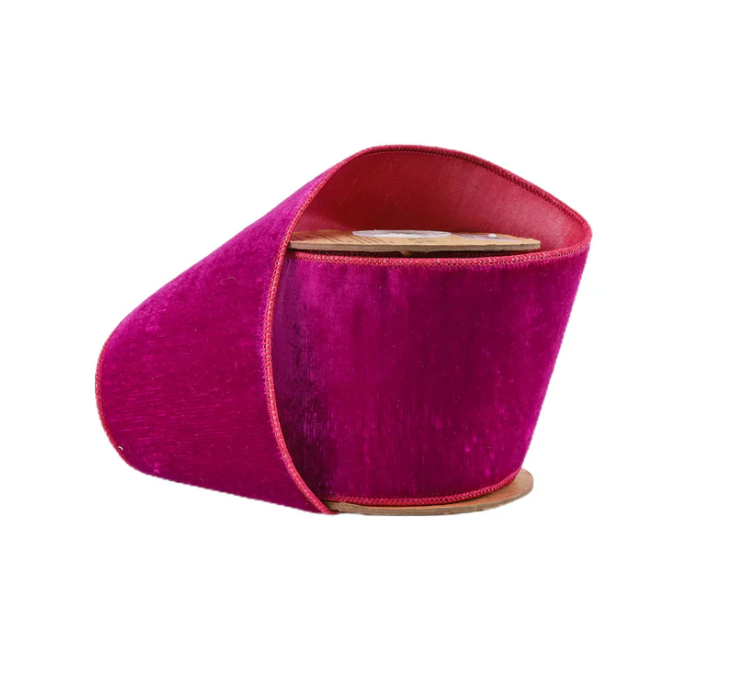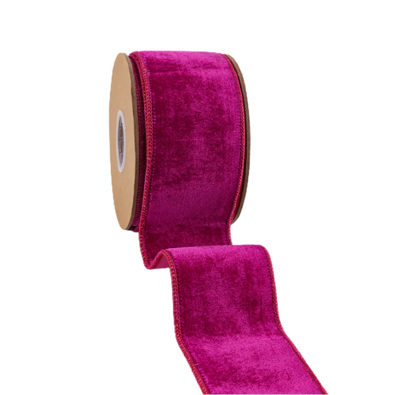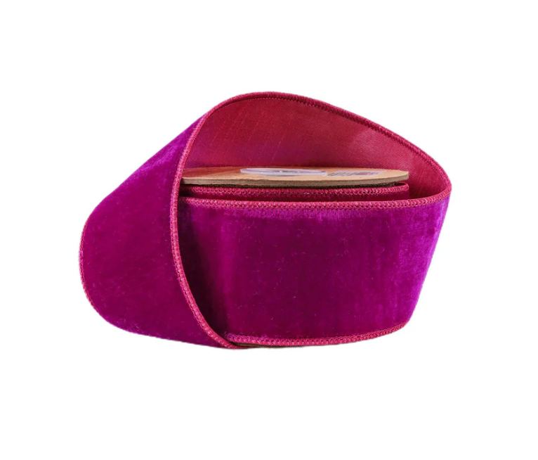 Wired Premium Velvet Ribbon Hot Pink w/ Pink Dupioni Backing