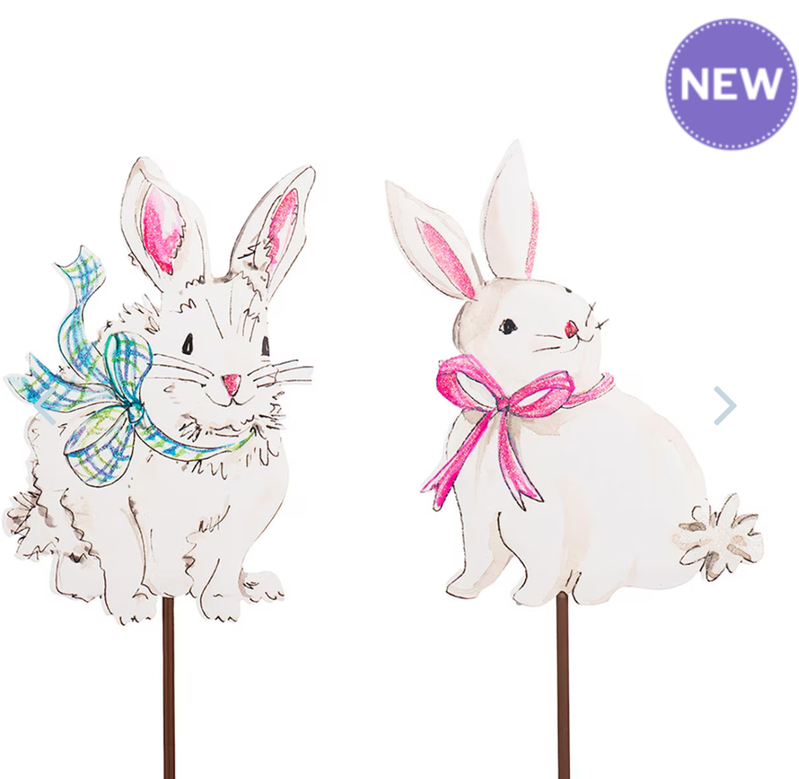 The Gingham Bunnies, designed by Rosanne Beck, showcase charmingly crafted bunnies that are perfect for enhancing your Easter decorations with a festive flair. Utilize the stake, hang, or easel features to display this item in your home or garden.