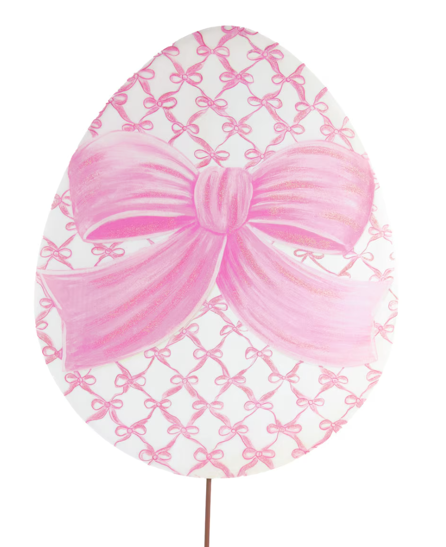 This yard-sized Bowtiful Egg is a trendy and sophisticated decoration that is sure to make a bold impression for the Easter holiday. Utilize the stake, hang, or easel features to display this item in your home or garden.