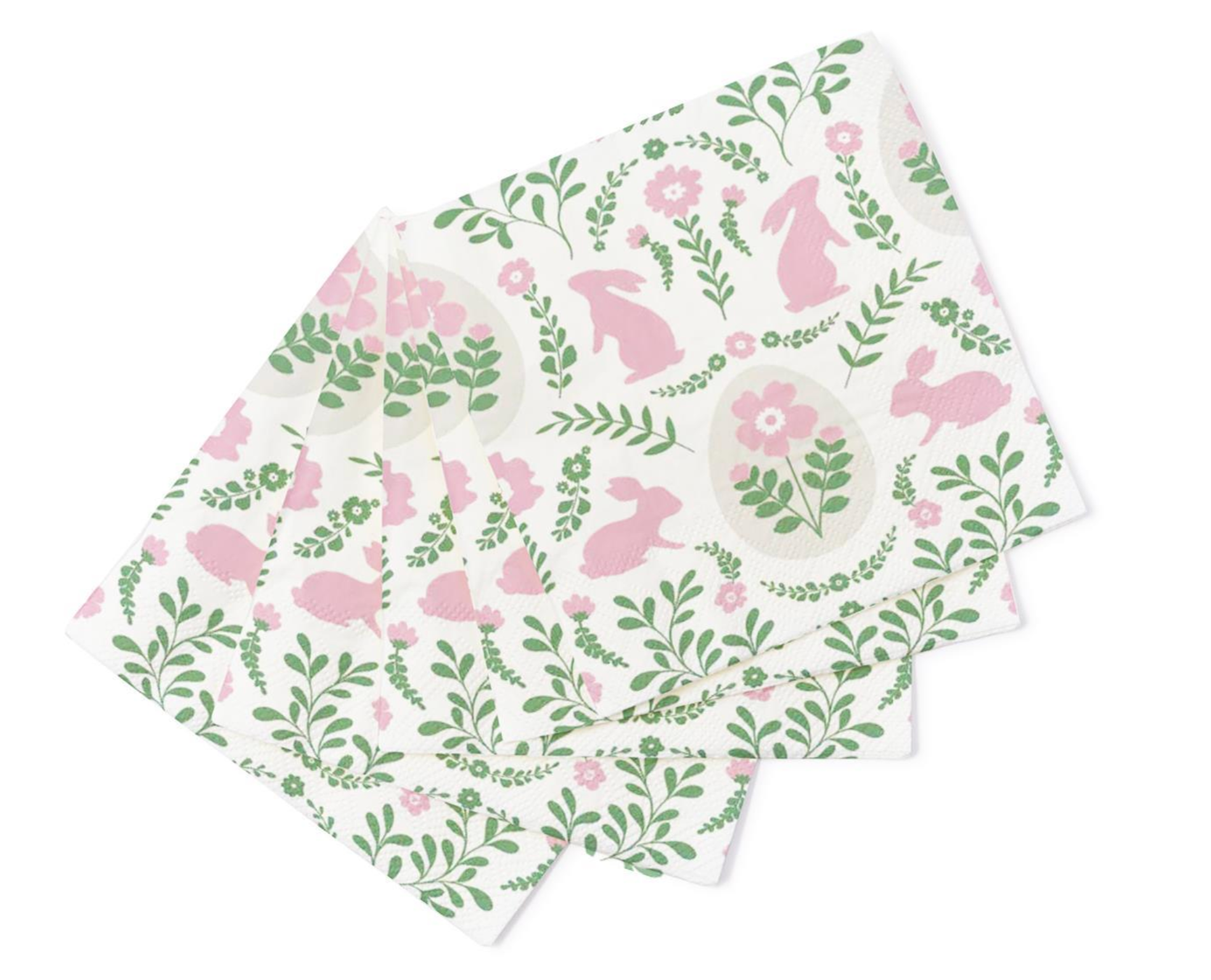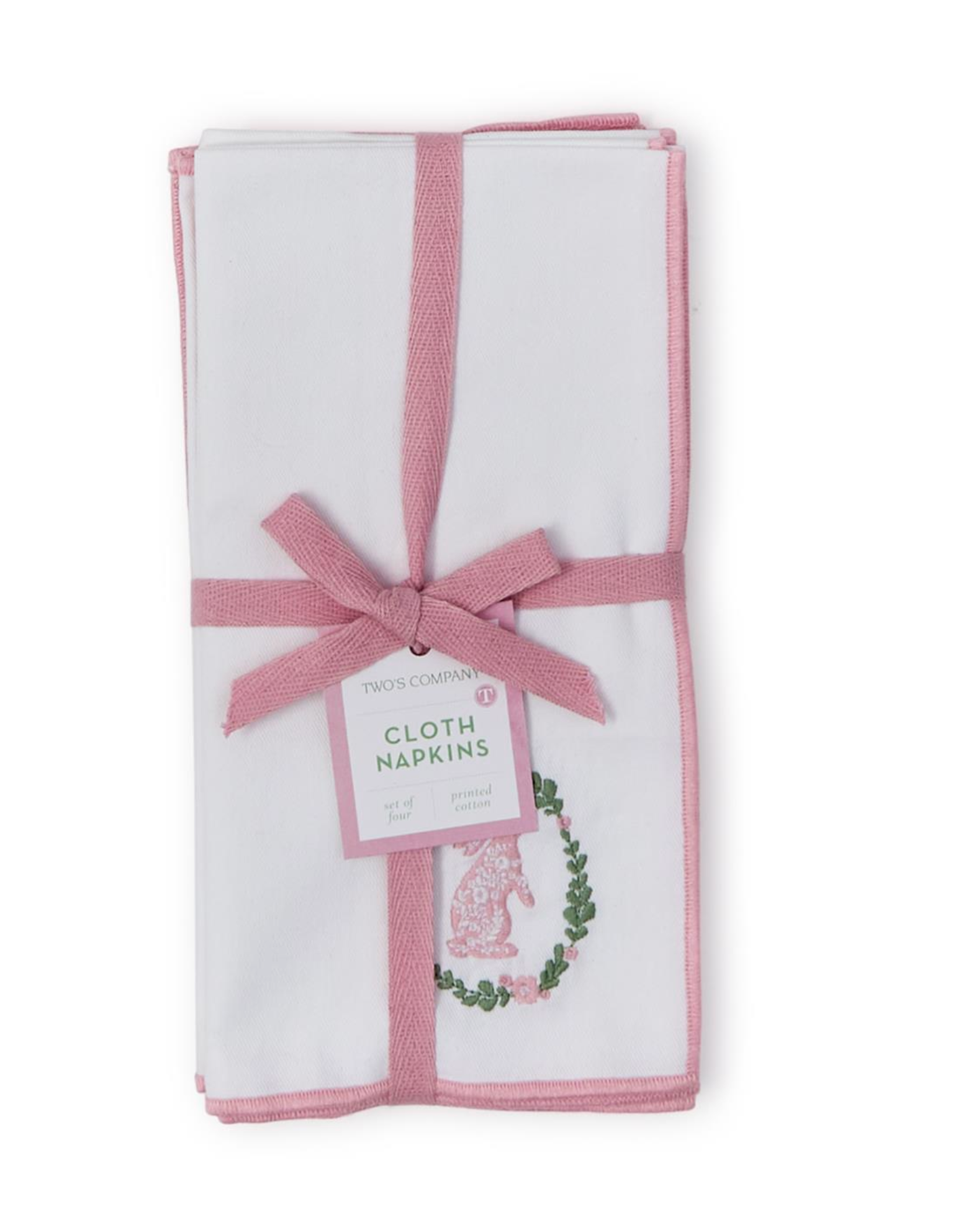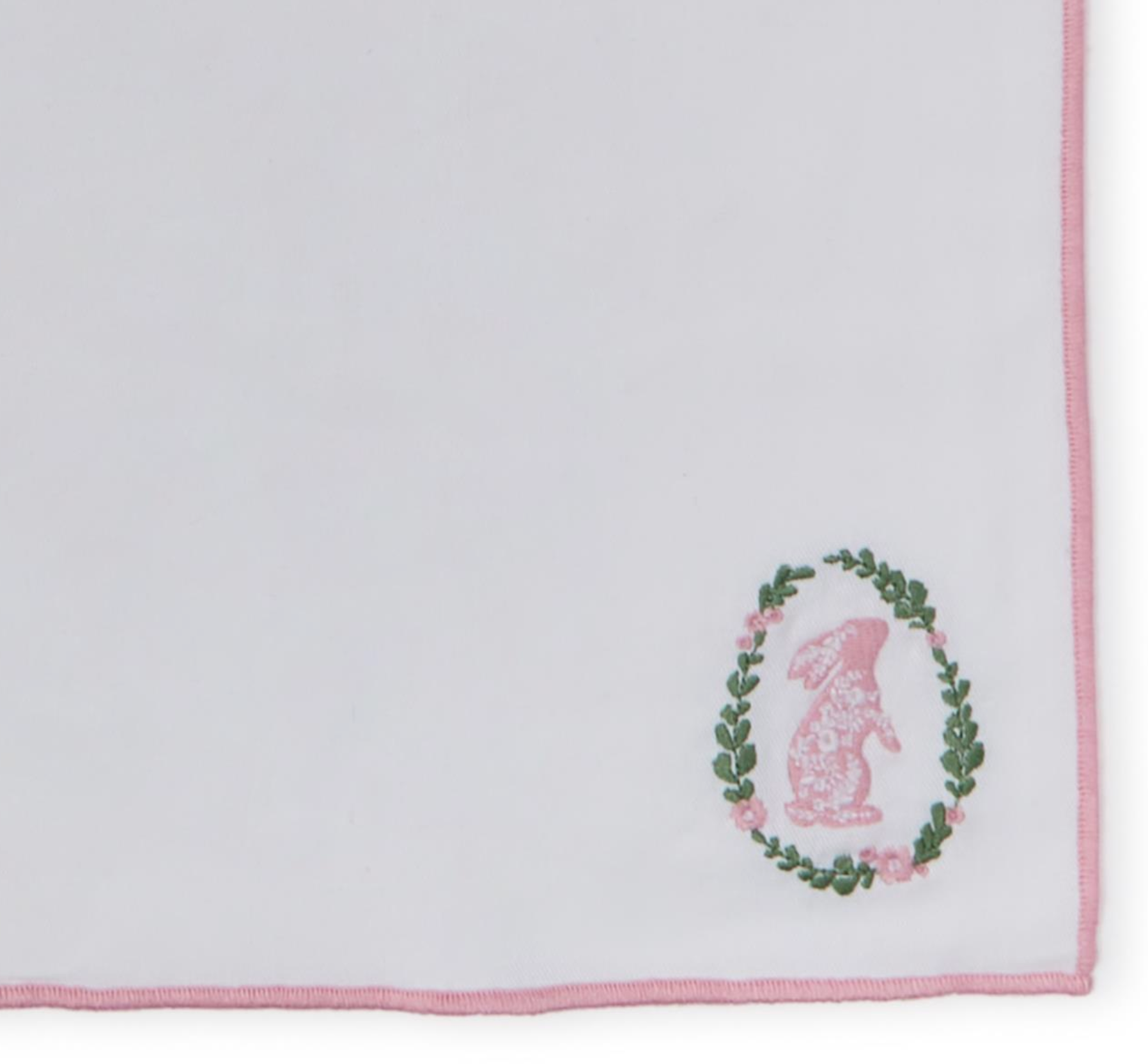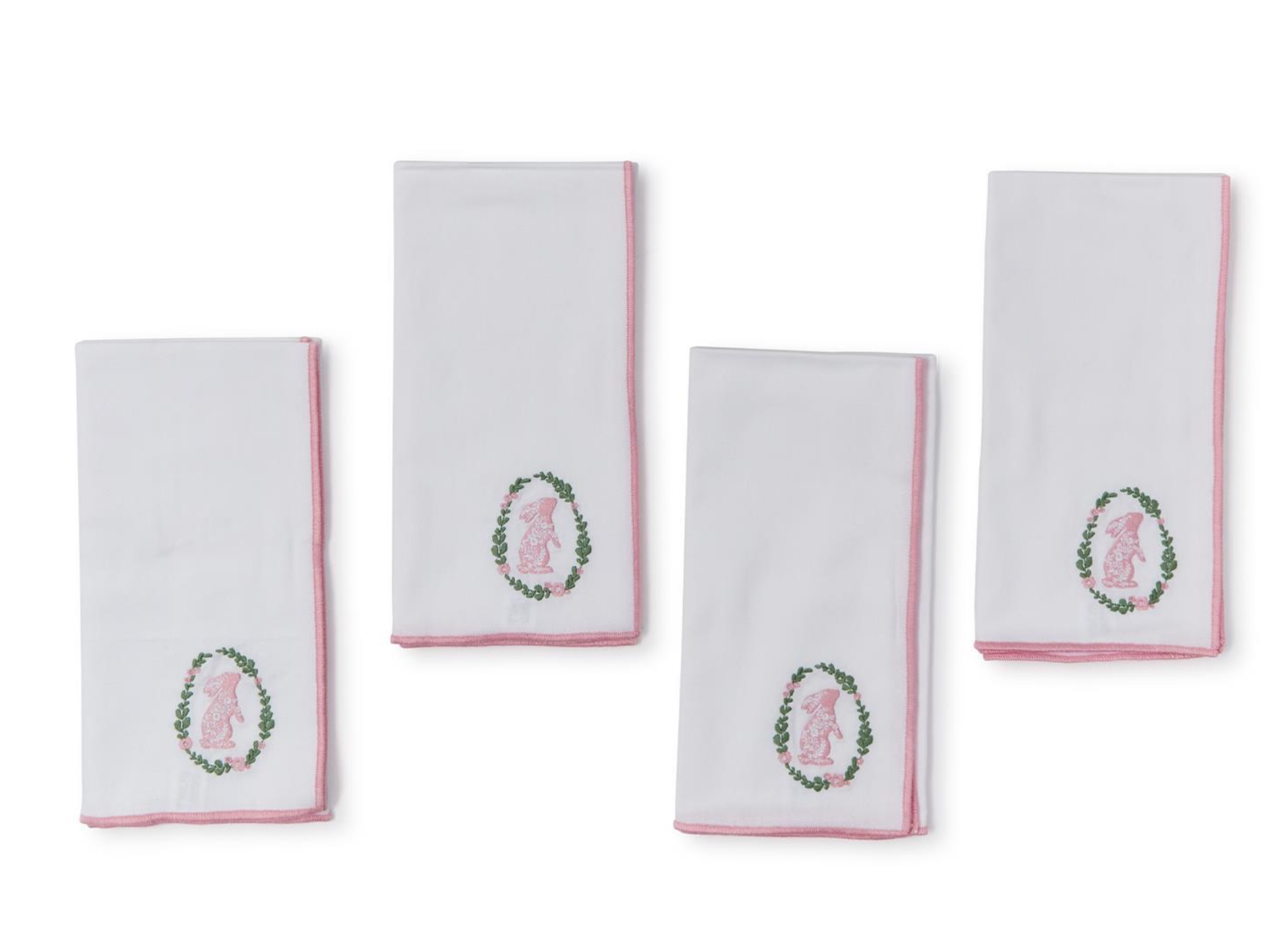 Spring Soiree Set of 4 Embroidered Bunny Napkins with Merrow-Stitch Trim