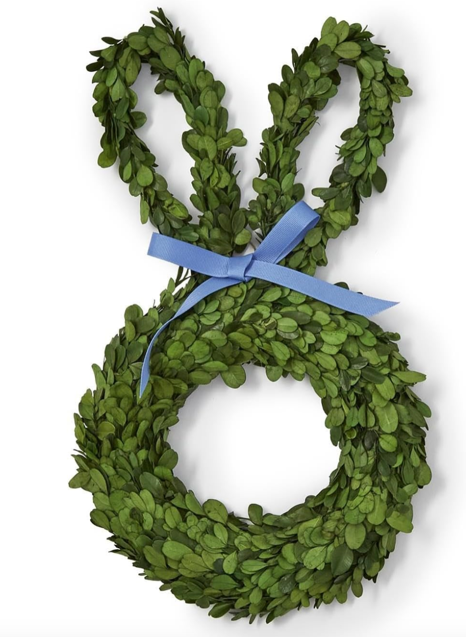 Preserved Natural Boxwood Leaves Hand-Crafted Bunny Wreath
