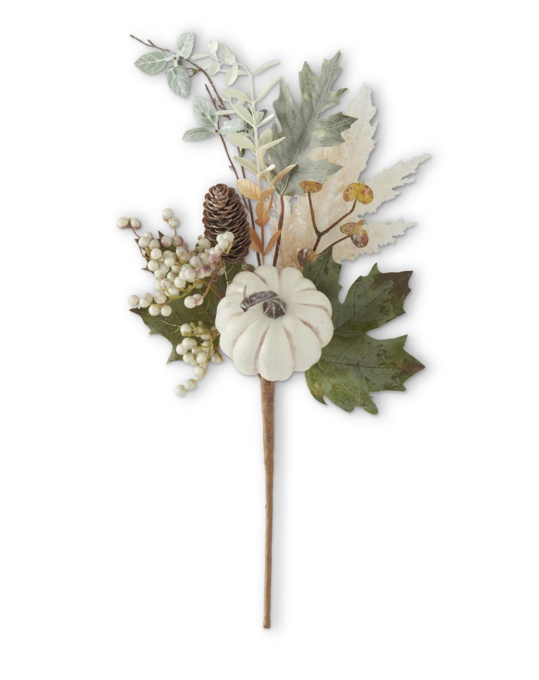 22 Inch Mixed Fall Foliage Stem with White Pumpkins & Pinecones