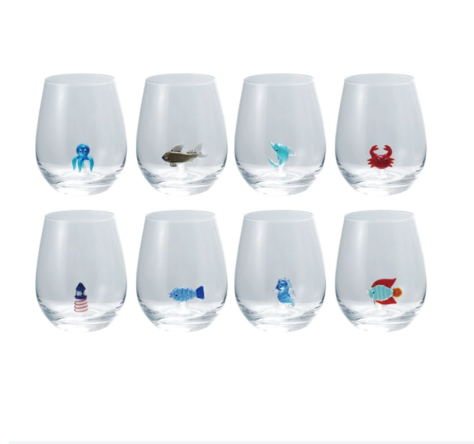 18 oz. Stemless Wine Glass with Hand-Blown Figure Inside, 8 Styles