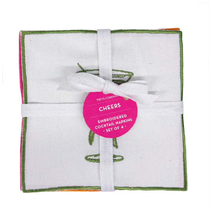 Cheers! Embroidered Cocktail Napkins Set of 4