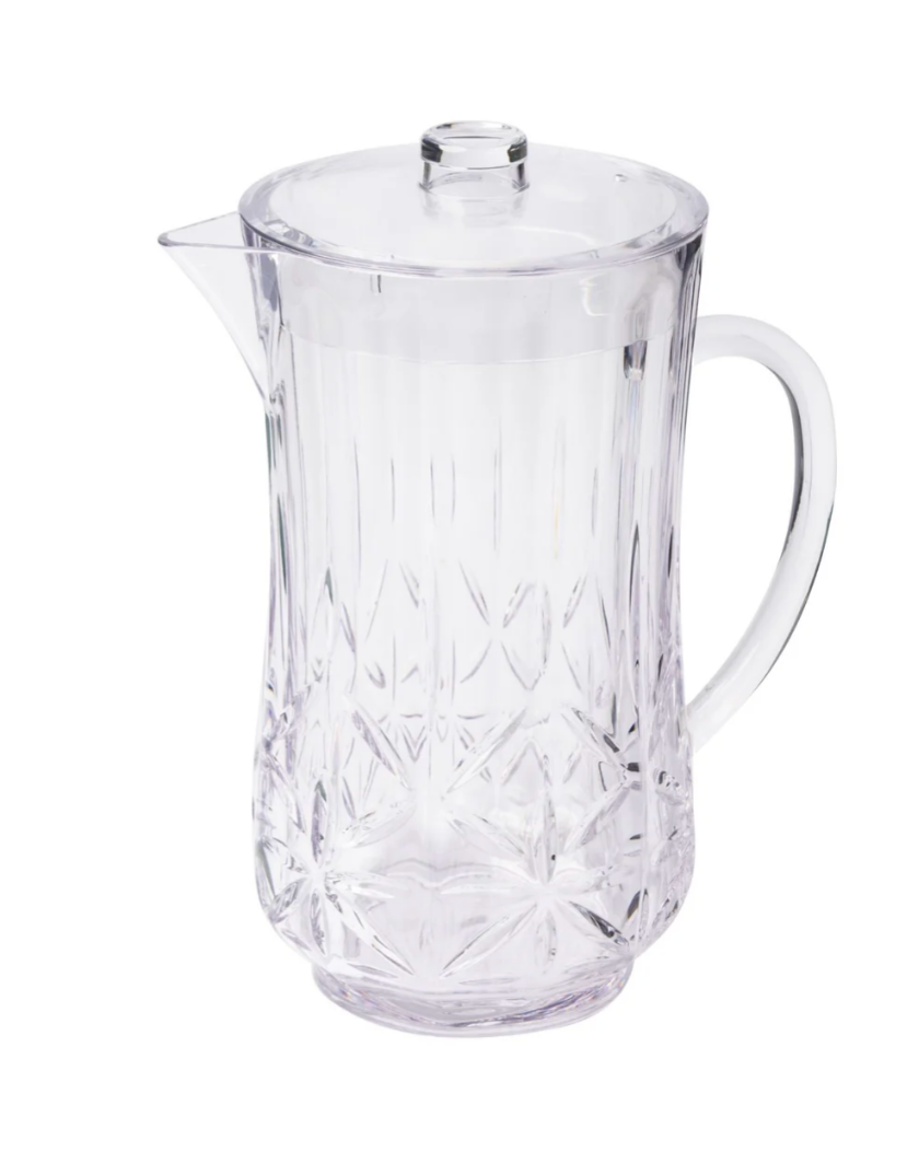 Why is this pitcher better than glass? It doesn’t sweat, so you won’t have to deal with drips on your table or a pool of water at the base. This sophisticated, crystal-like pitcher will enhance any setting, adding a touch of elegance and practicality to your gatherings. Enjoy the beauty of fine glassware with the durability and convenience of high-quality plastic!