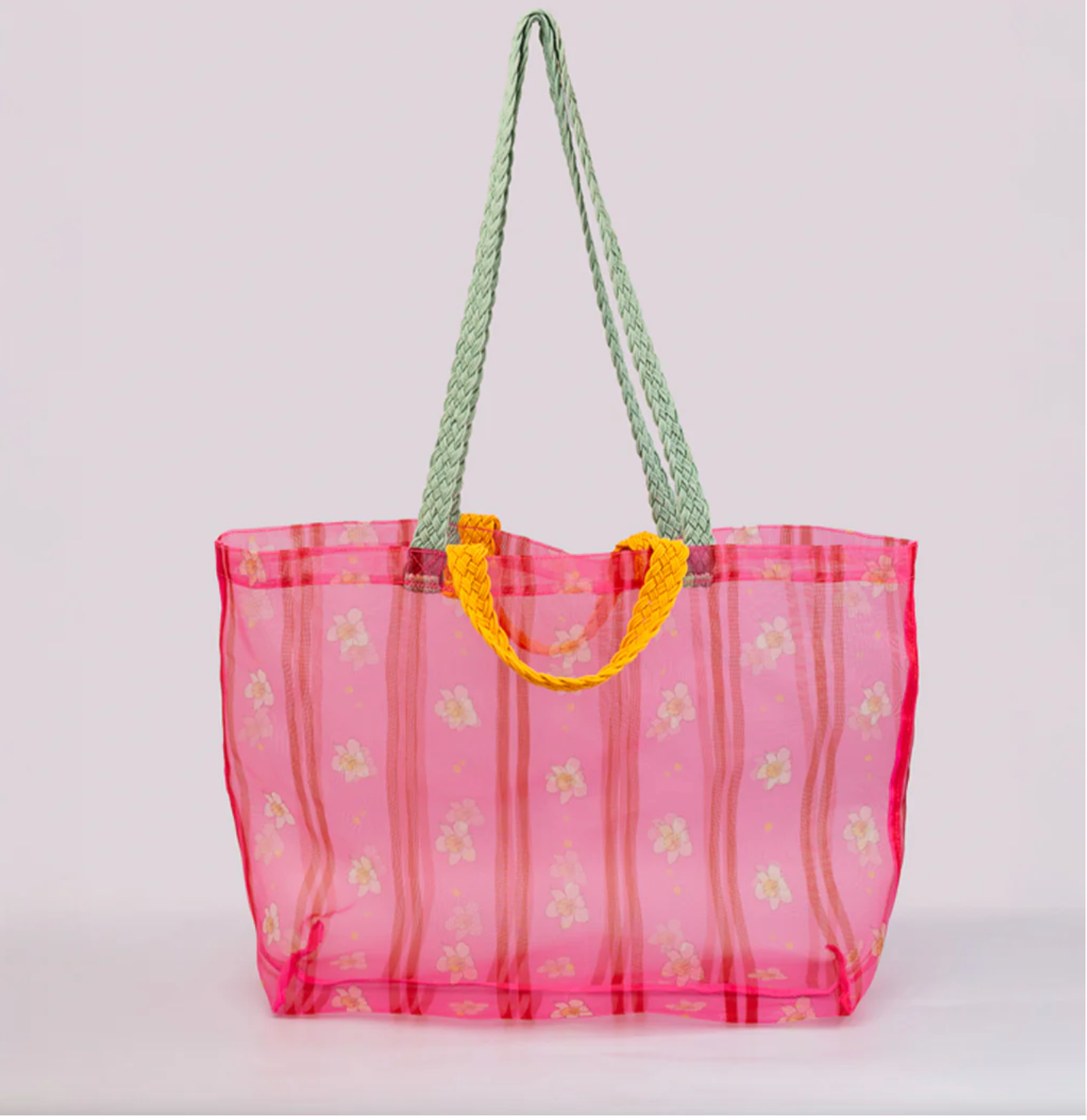 Floral Stripe Mesh Market Bag