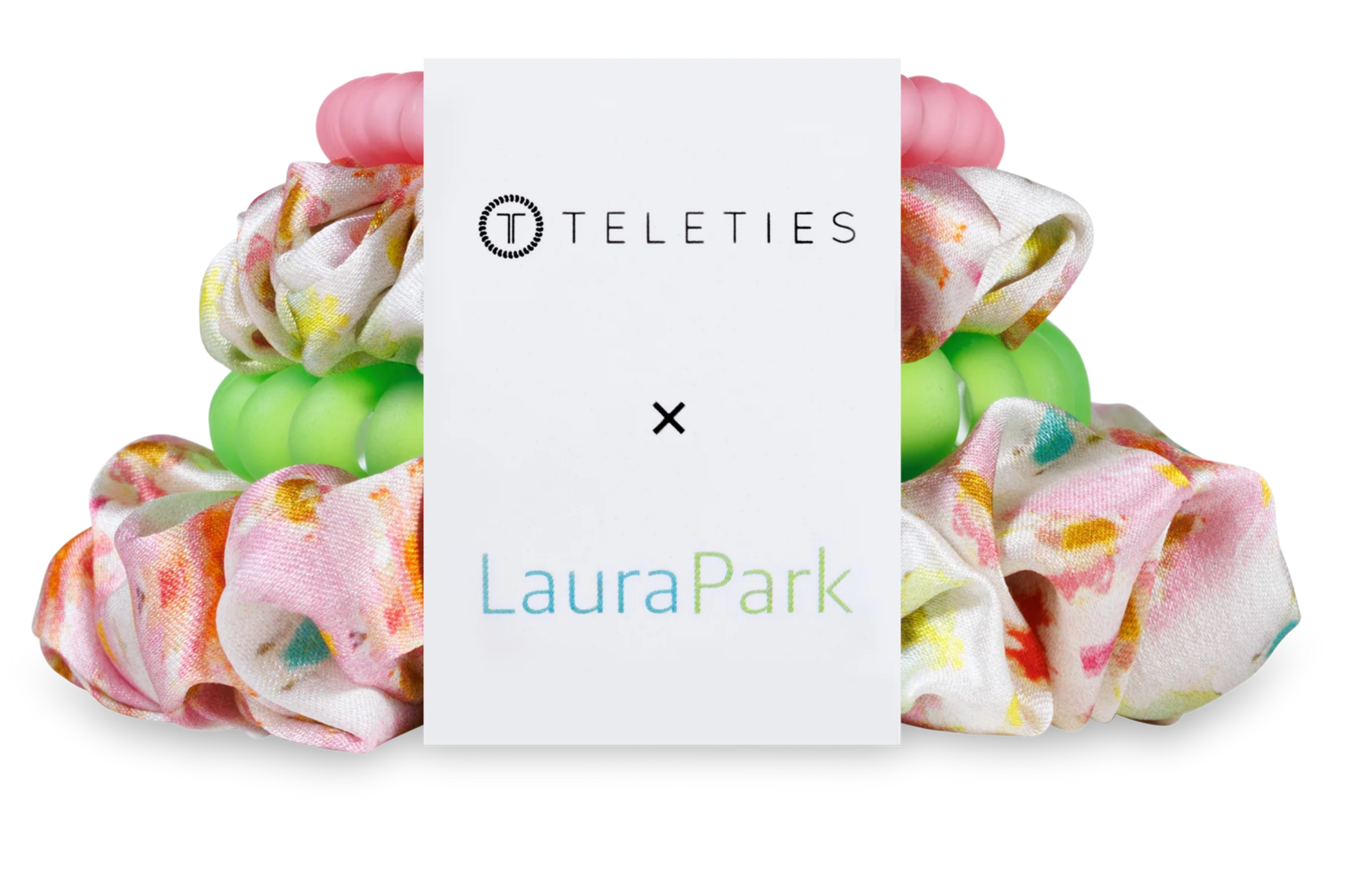 The TELETIES x Laura Park Collection is a total game- changer! With Laura's signature vibrant designs, these hair ties and silk scrunchies bring a burst of color and creativity to your routine—stylish, fun, and totally functional! Don’t miss out!