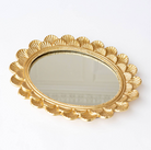 Elevate your living space with the Gold Scalloped Oval Mirrored Vanity Tray, a perfect blend of elegance & functionality. This 12.25 x 10 x 1" tray, expertly crafted from durable aluminum with a chic gold finish, adds a touch of sophistication to any room. Whether used as a centerpiece on your dining table or a stylish organizer for your favorite perfumes on your vanity, its reflective surface highlights your décor with a touch of glamour. Designed in the USA & imported, the tray includes a convenient hook for hanging, allowing it to double as a wall accent. Transform your home into a haven of style with this versatile mirrored tray.