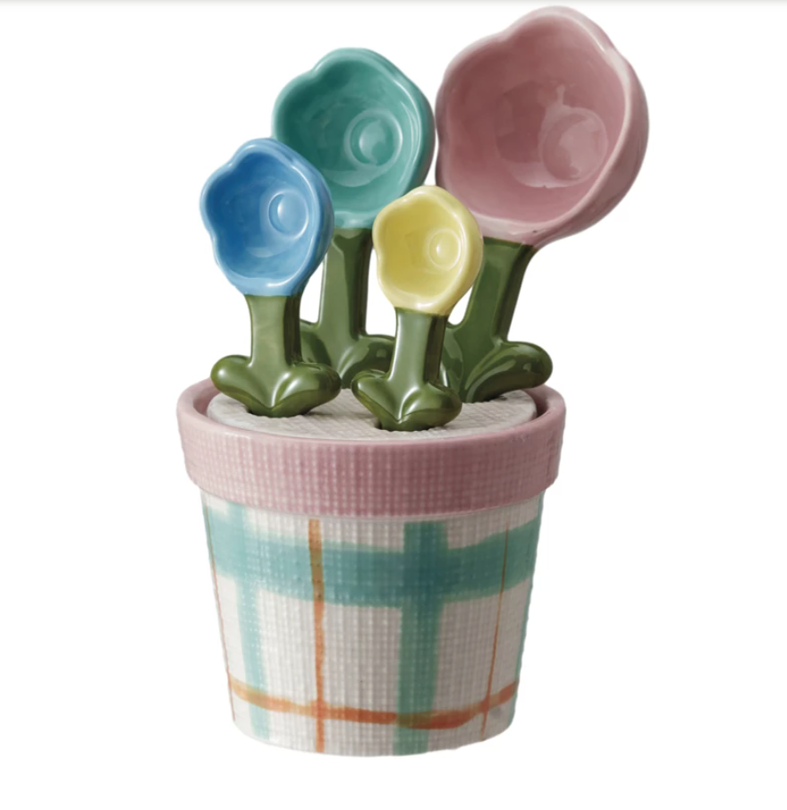 Hand-Painted Stoneware Measuring Spoons w/ Pot Holder