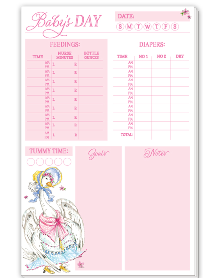 HANDPAINTED PINK BABY'S DAY WITH MOTHER GOOSE LARGE NOTEPAD