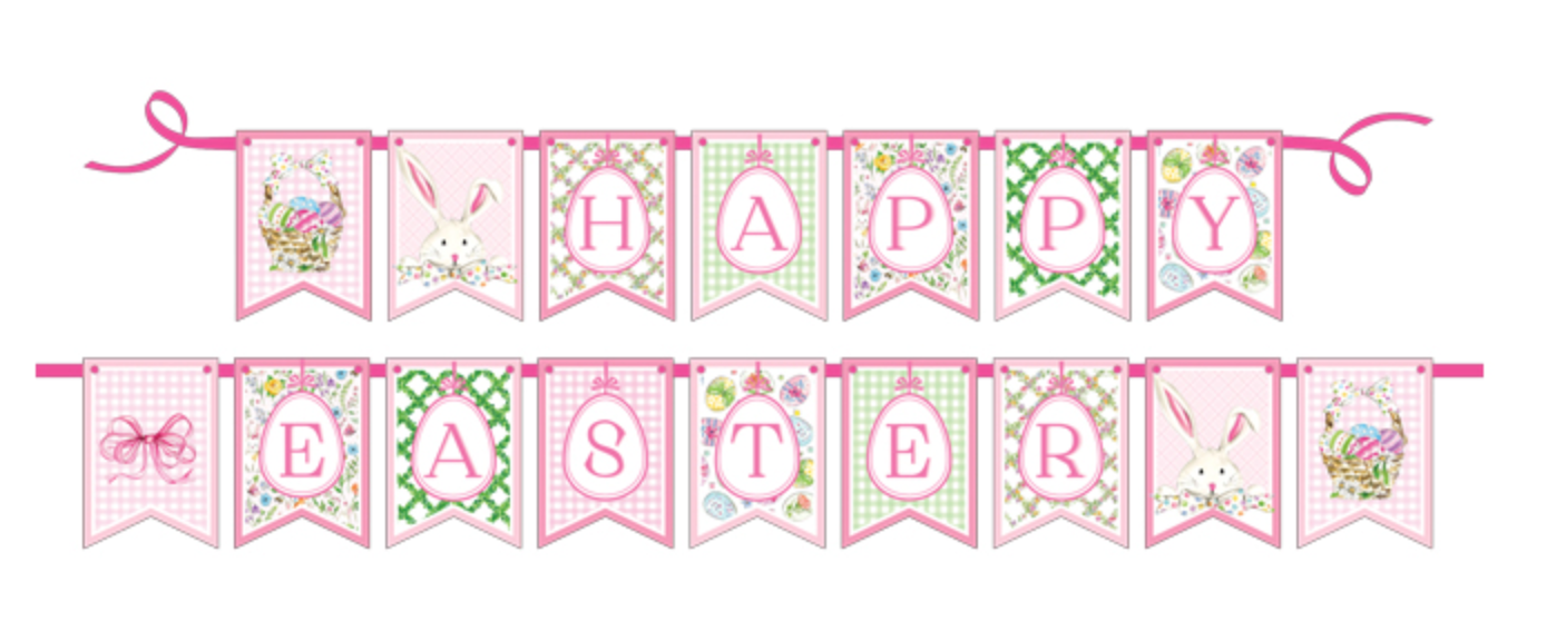 HAPPY EASTER PINK AND GREEN PARTY BANNER
