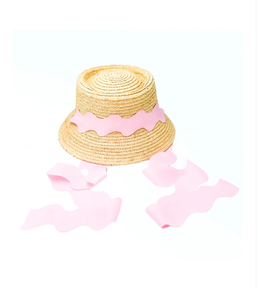 This stylish straw hat offers pretty protection from the sun. Each is integrated with a scalloped pink grosgrain ribbon in a shape that mimics the ocean’s waves to add a bit of whimsy for beach or pool days, bike rides, picnics, and everywhere in between.