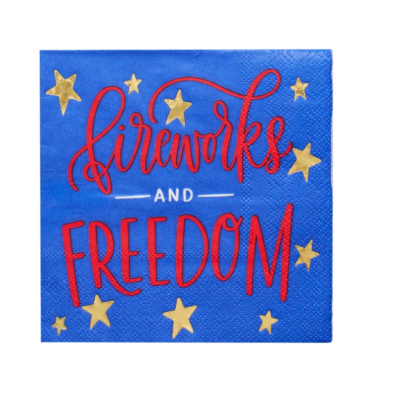These patriotic cocktail napkins feature metallic gold accents and are the perfect way to elevate any event. Whether used to hold appetizers or placed under your beverage at the dinner table, these napkins bring both practicality and fun to any occasion!