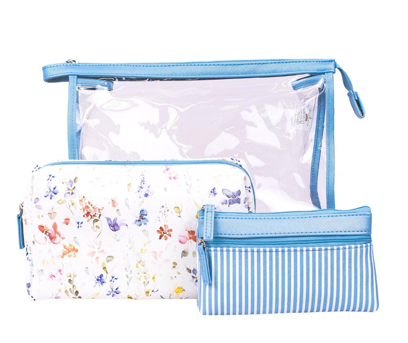 The Nora Travel Gift Set Blue/Multi is the perfect combination of style and functionality. The set of four bags, measuring 11.5x8.25x4.5, is perfect for all your travel essentials