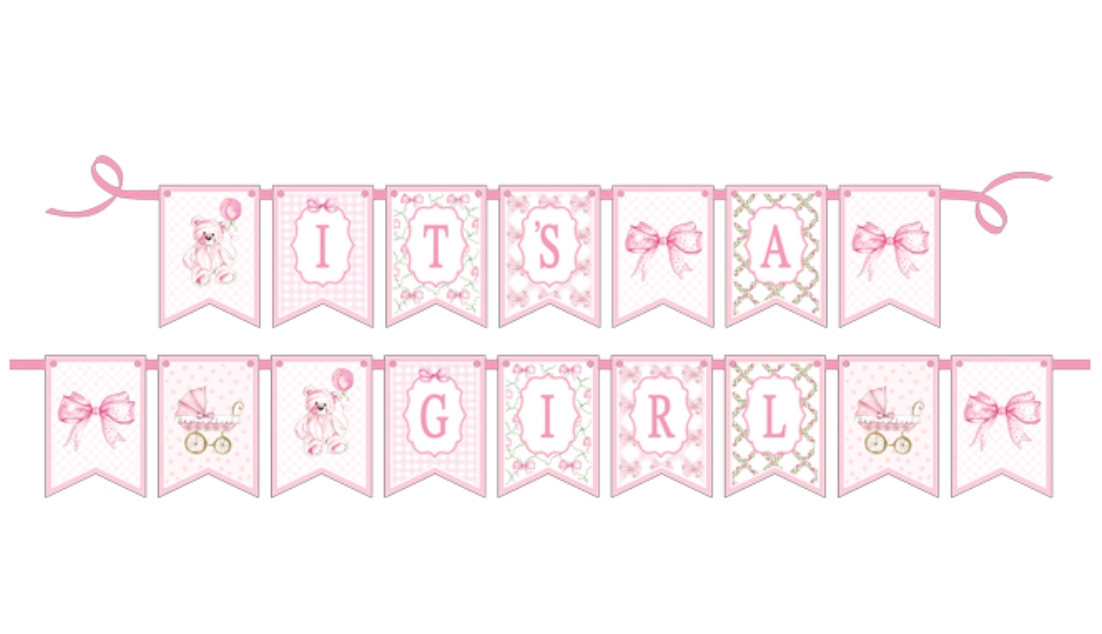 PINK GINGHAM IT'S A GIRL PARTY BANNER