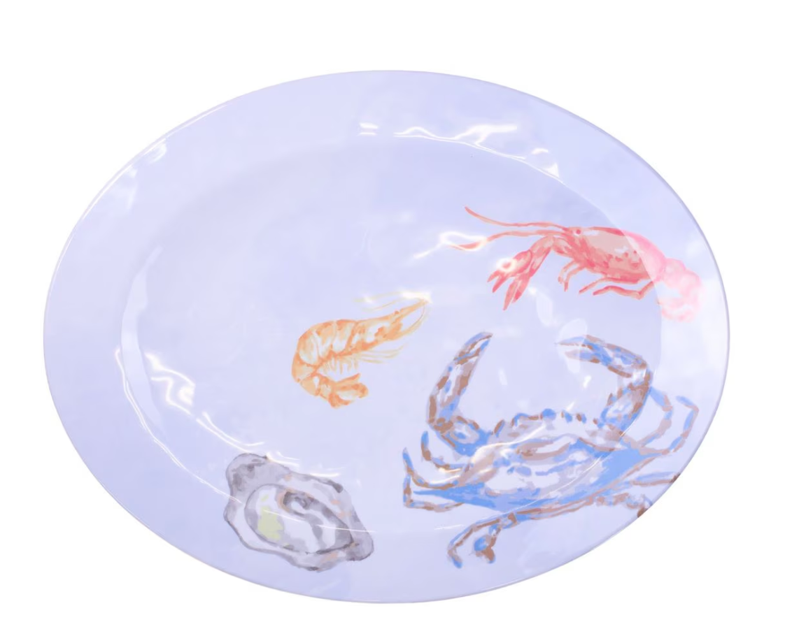 The Pontchartrain Melamine Platter is a stylish and durable serving platter that measures 18x14 inches. Its white and multi-color design is perfect for any occasion, whether it's a casual outdoor party or a formal dinner.