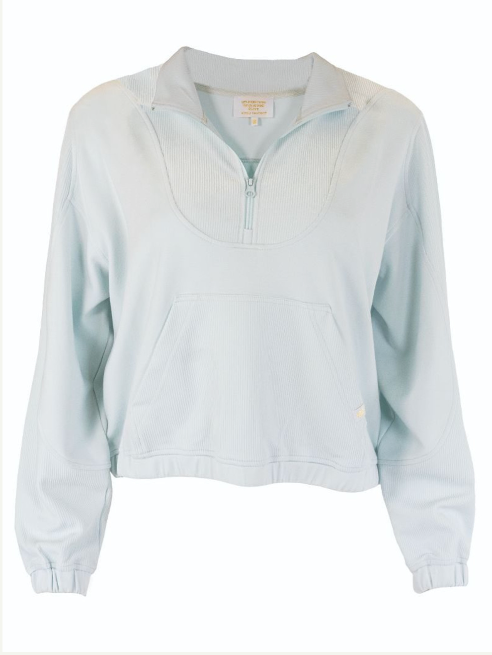 This quarter zip pullover features quarter zip front mock neck and rib panels, elastic cuffs and hem with kangaroo front pocket and Simply Southern logo label on pocket.. Made of 48% modal 48% polyester 4% spandex.
