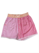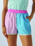 Take it easy and relax in these super cute shorts. They feature striped design, elastic waistband with bow ribbon at center front, faux button front, front pockets, lace detailing at hem and Simply Southern logo label on the pocket.