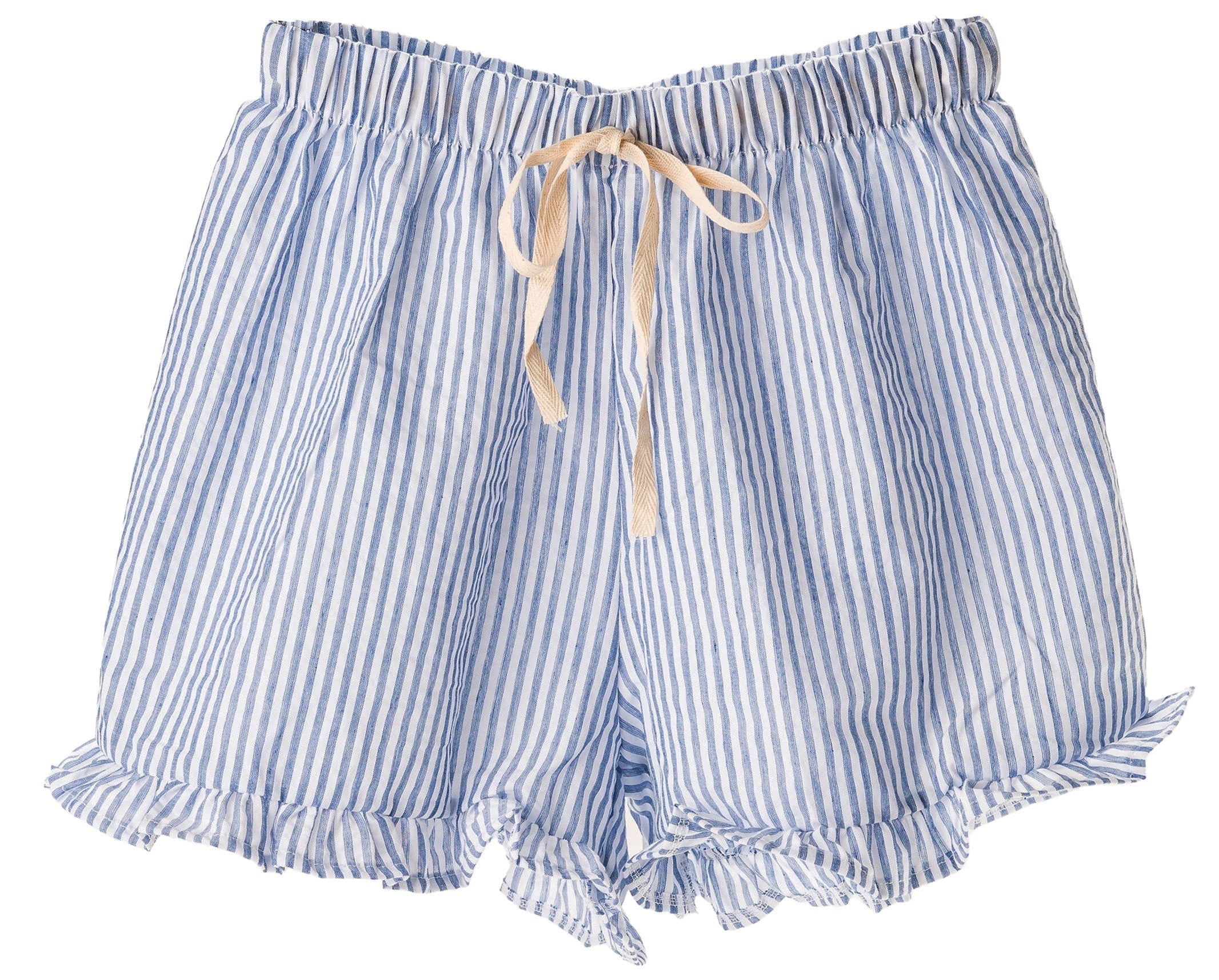 Unleash your inner girly-girl with the Skylar Ruffle Shorts! Perfect for lounging or casual days, these comfy seersucker pajama shorts will add a touch of playfulness to your wardrobe. You'll love the flirty ruffle details that are sure to make a statement. Get ready to feel cute and cozy!