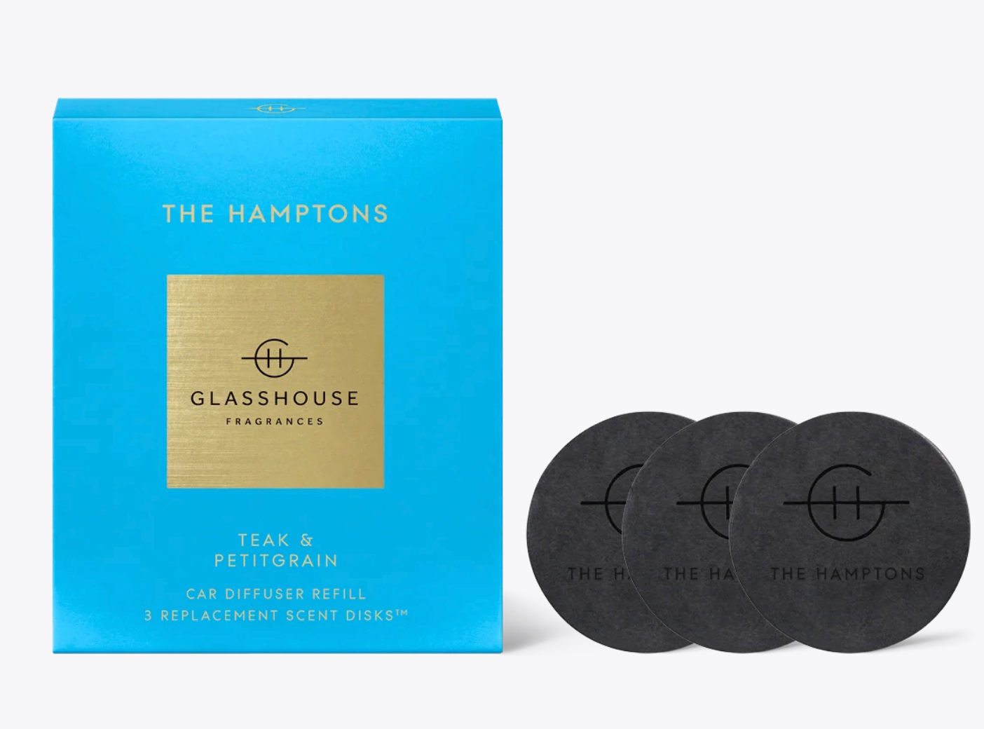 A three-piece Scent Disk™ refill to refresh and strengthen the potency of your Car Diffuser. Inspired by a coastal escape, it blends sunshine, soft cashmere, and a hint of expensive gin.