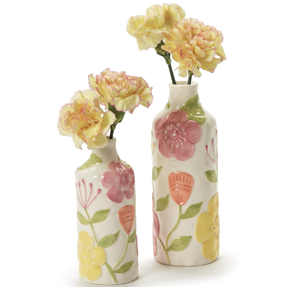 Bring the colors of spring to your table with our Floribunda vases, which are assorted two sizes and feature a beautifully sculpted flower design Each vase boasts a unique hand-painted floral relief design, showcasing the artistry of skilled craftsmen. In varying heights, they are perfect for displaying together or separately on a tabletop, mantel, or shelf.