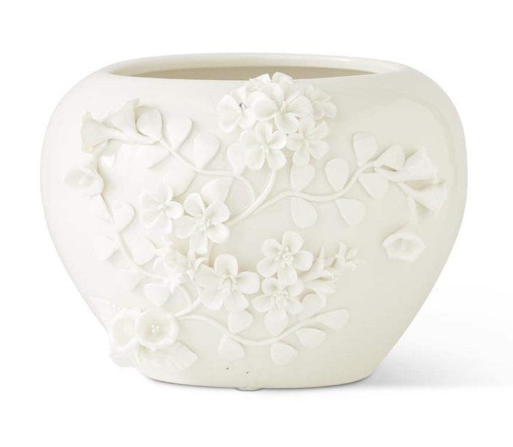 6.75 Inch White Ceramic Handcrafted Jasmine Vase