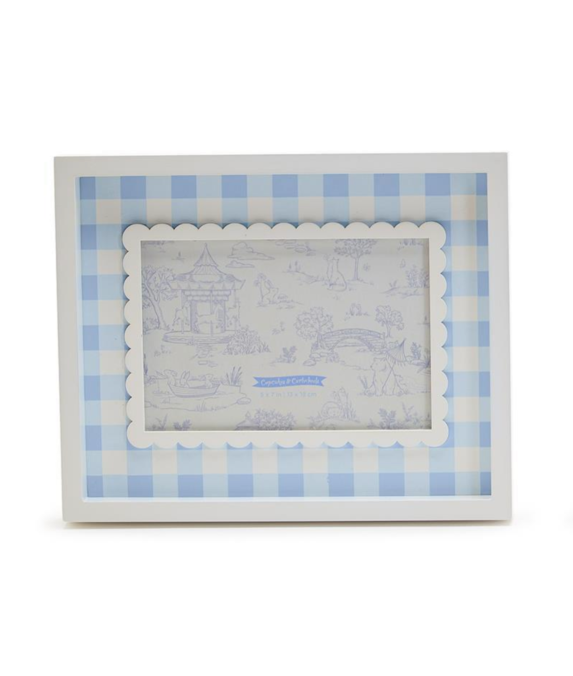 - The soft blue color and gingham pattern of these frames effortlessly blend with a variety of decor styles.