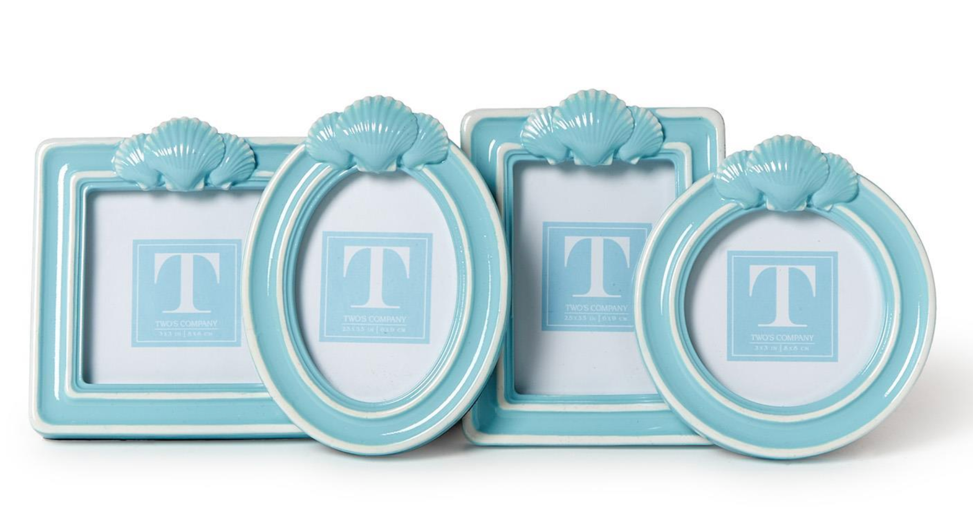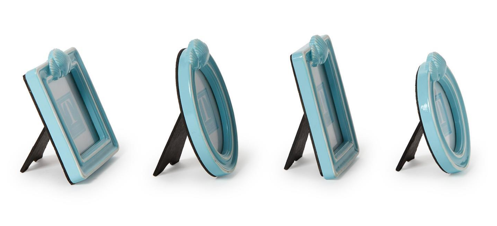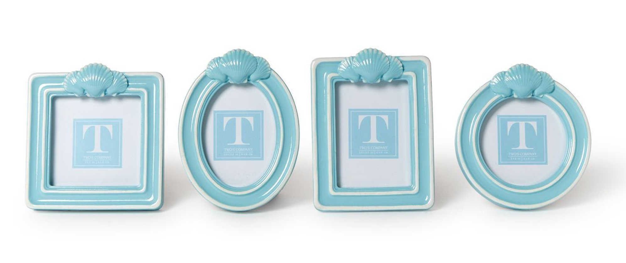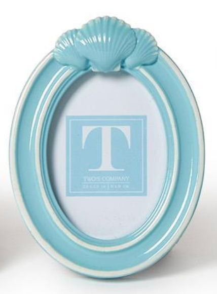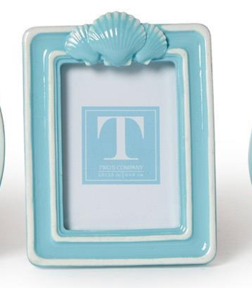 These Blue Shell Photo Frames brings a seaside touch to your favorite memories. Crafted from resin with glass fronts, each frame features a unique shell design in four distinct shapes-round, oval, square, and rectangle. Designed to stand vertically, they make a charming addition to beach-inspired dècor.