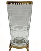This decorative vase has impeccable details. From the antique gold finished footing to the etched glass. These details make it a very collectable piece as well as endlessly useful.