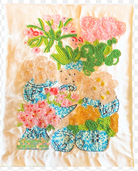 Add a splash of fun to your kitchen with the Flowers in Ginger Jar beaded tea towel. Its charming floral design and sparkling bead details make drying dishes a delightful experience. Perfect for brightening your space while keeping things tidy with a playful twist.