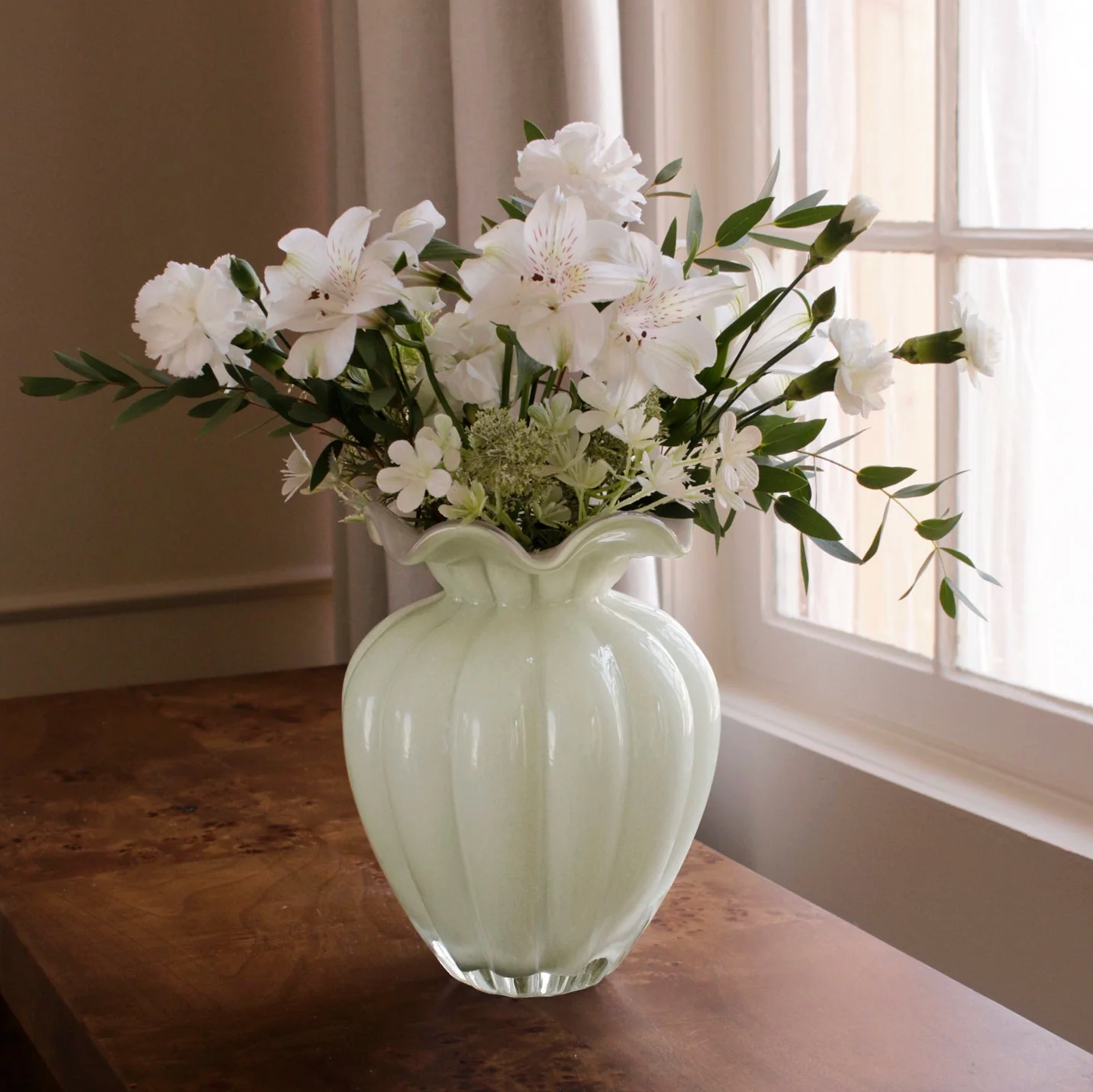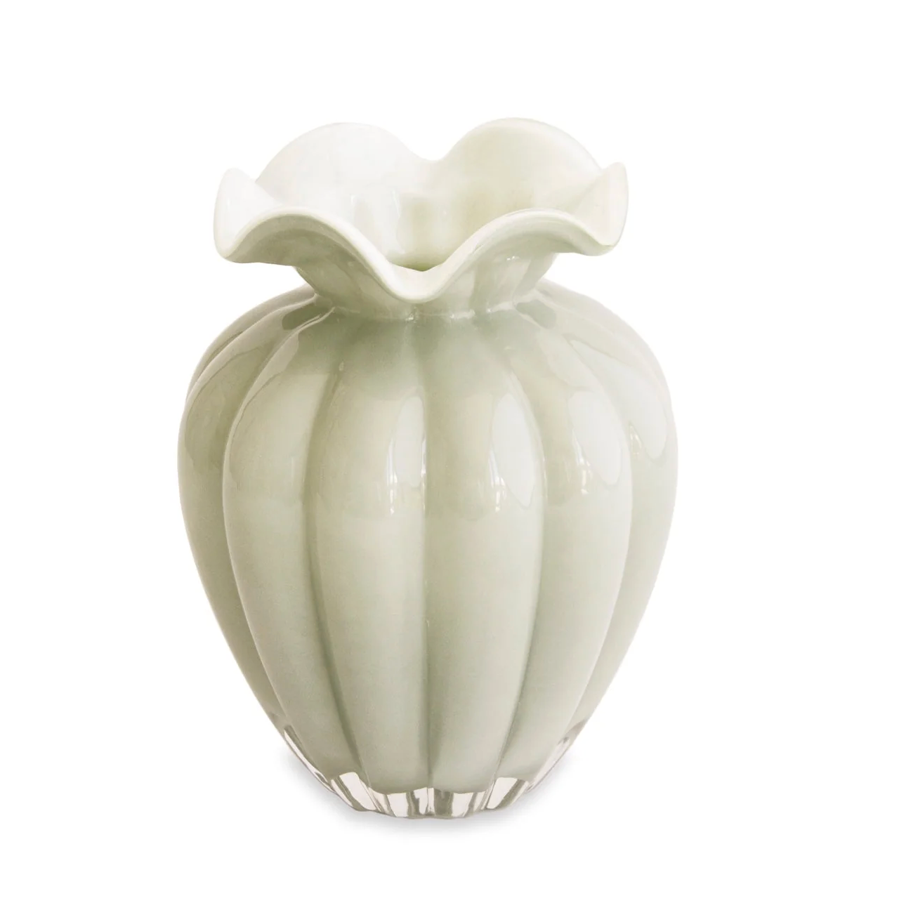 Fresh and contemporary. The GLASS Vento Large Vase in pistachio brings a light green hue and clean, fluid design to any space, making it perfect for colorful arrangements or as a standalone accent piece.