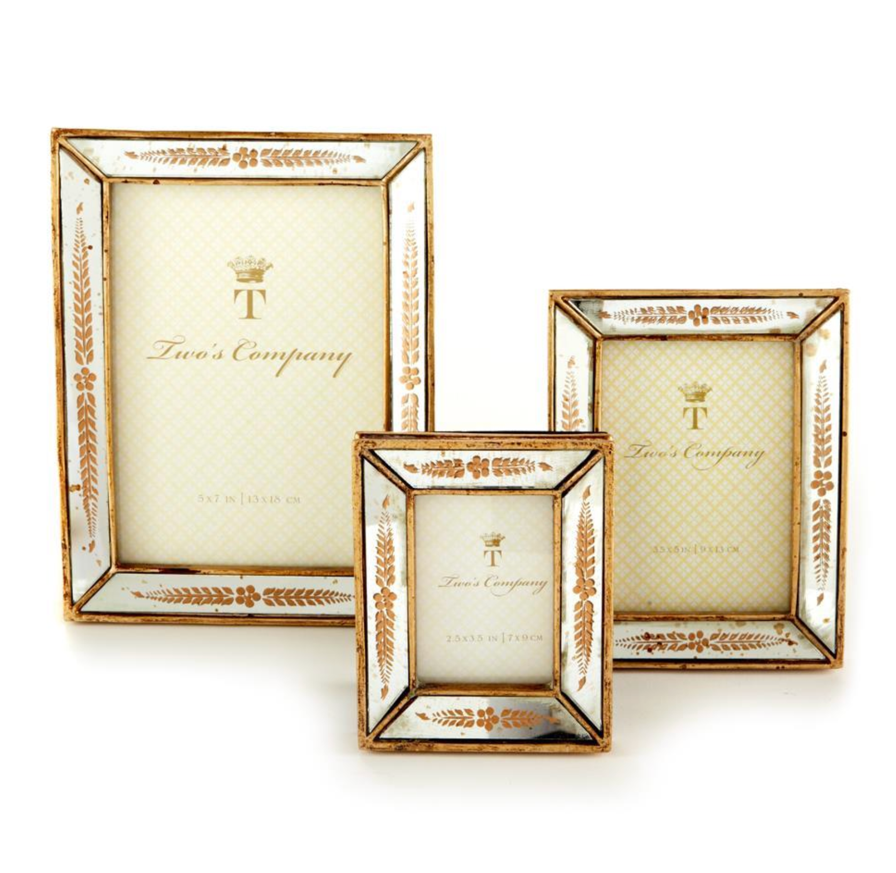 These gold leaf mirror frames are created with a timeless design that will never cease to surround your memories with beauty and elegance.