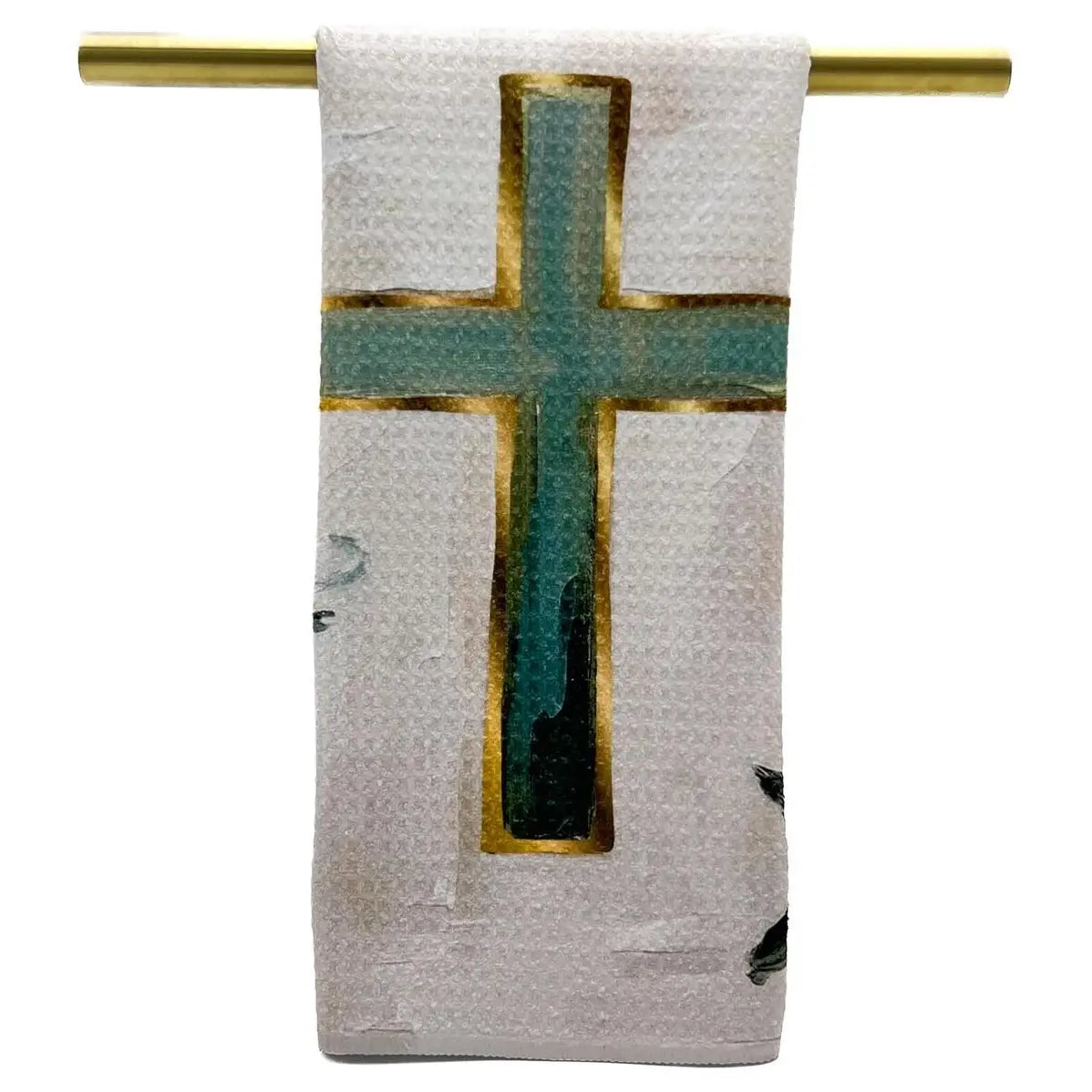Painted Teal Cross Tea Towel