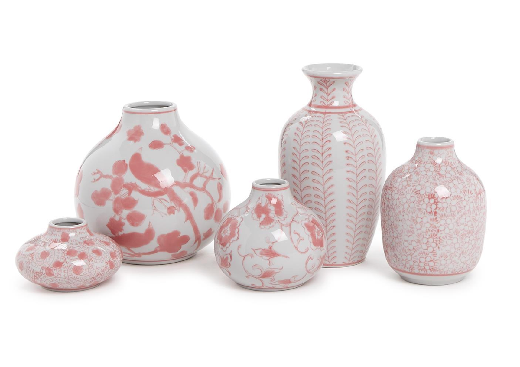 Transform your living space with the elegance and charm of our Pink Chinoiserie Set of 5 Hand-Painted Vases. Crafted from premium stoneware, each vase showcases meticulous hand-painted details, exuding timeless beauty and sophistication. Whether displayed together as a stunning centerpiece or scattered throughout your home, these vases effortlessly elevate any decor with their delicate pink hues and intricate Chinoiserie motifs.