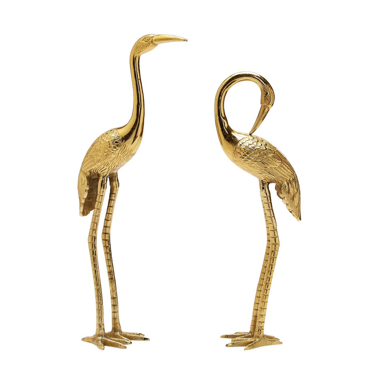 Set of 2 Crane Sculpture with Antiqued Gold Finish