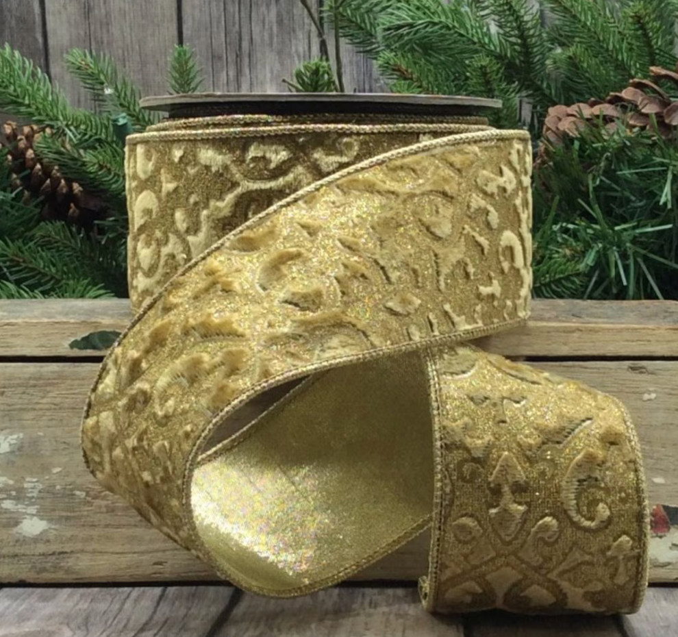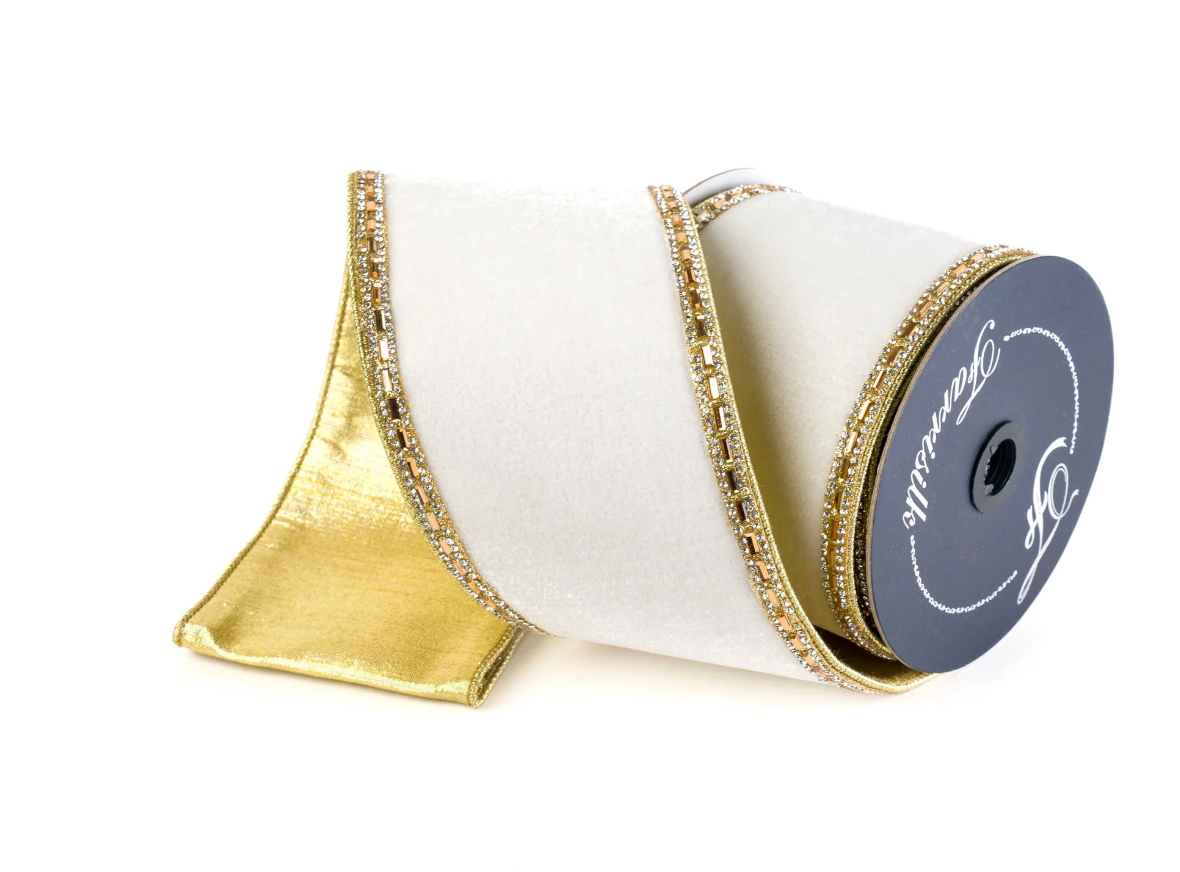 1" Jeweled Trimming Deluxe Metallic Two Sided Wired Edge Ribbon