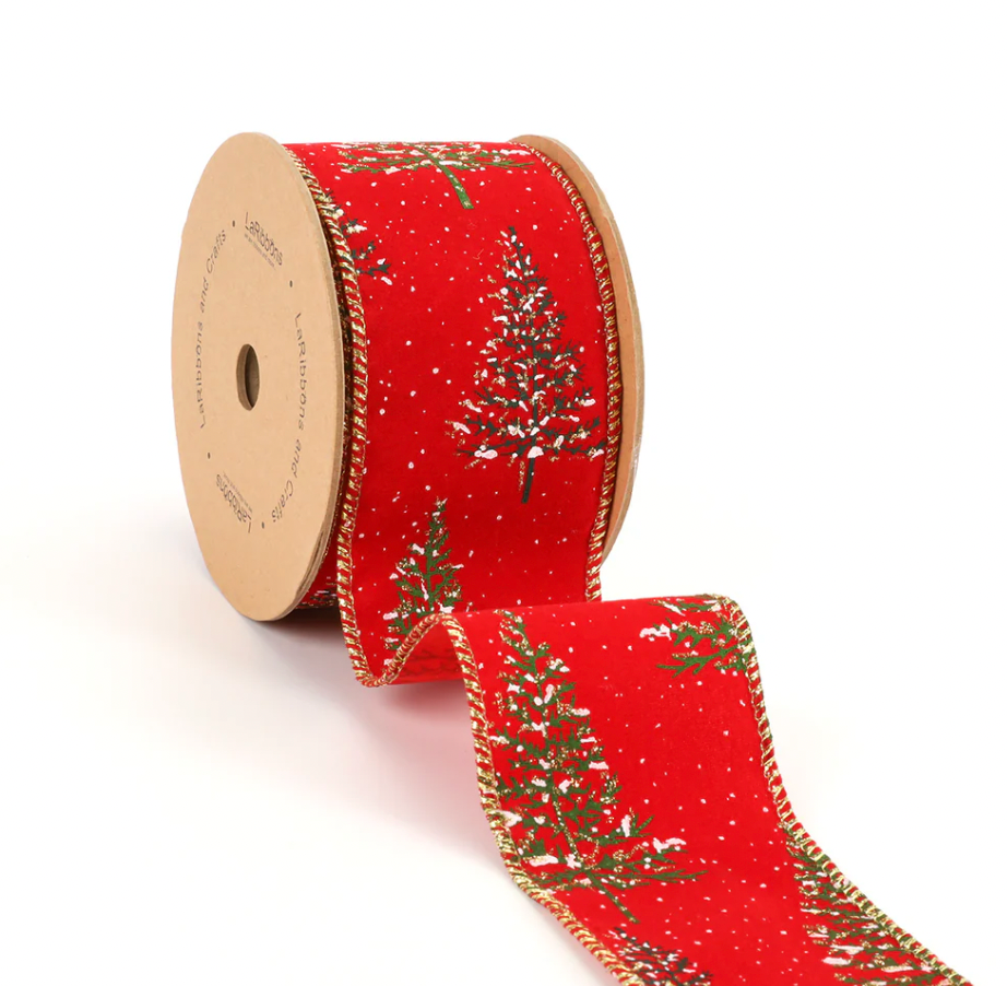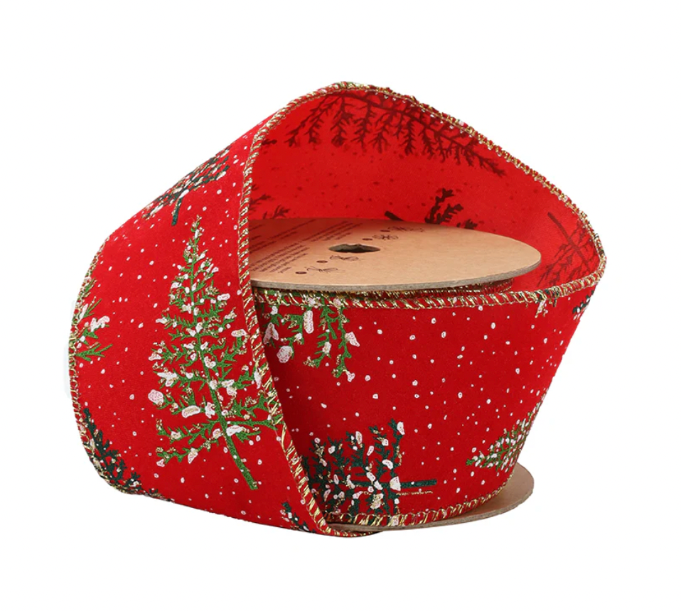 2 1/2" Wired Ribbon | "Snowy Trees" Red/Multi | 10 Yard Roll