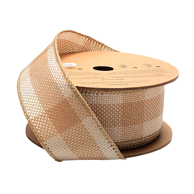 1 1/2" Wired Ribbon | "Check" Natural/White | 10 Yard Roll