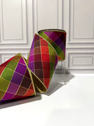 Bring bold elegance to your décor with the Diamond Jewel Tone Deluxe Metallic Backed Wired Edge Ribbon. Featuring a rich diamond pattern in vivid jewel tones, this ribbon is backed with a shimmering metallic finish that adds extra sparkle and structure. Wired edges make it easy to create dramatic bows and festive accents that hold their shape beautifully.