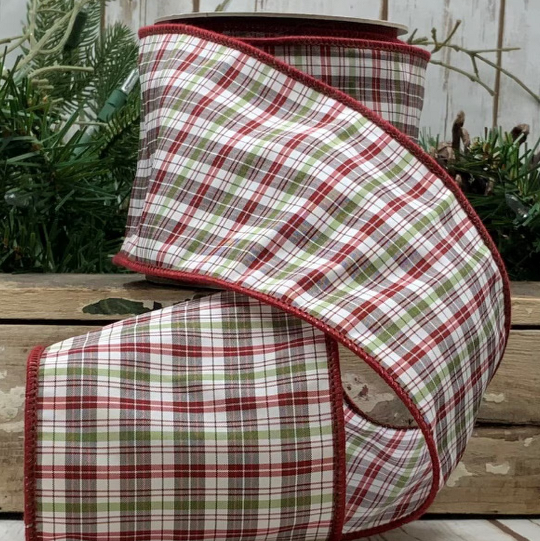 Description: 4" x 10yds dupion Gordon plaid, burgundy-green-white